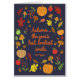 Dekoratives saisonales Design mit Blätter, Kürbissen, Akkorden, Äpfeln, Beeren und Pilzen. W.C. Bryant Zitat.