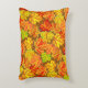 Nahtloses Blockmuster aus stilisierten Herbstlauben in Braun, Rot, Orange, Gelb und Grün.