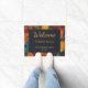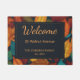 Ein saisonales Design der Blätter schmückt dieses elegante Türmchen für die Herbstsaison. Die Blätter des Herbstes sind goldfarben, orange, grün und blau und bilden eine attraktive Kulisse. Der zentrale Bereich ist hellorangefarbener Text auf einem tiefblauen Hintergrund und zeigt oben in der Schriftzypografie ein warmes "Willkommen". Die Matte kann mit Ihrer Adresse, dem Namen(en) und dem Datum personalisiert werden, das in diesem Wohnsitz "festgelegt" ist. Ein ideales Hauswärmeschenk und ein einladendes Accessoire für Ihre Gäste.
