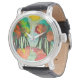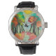 Uhr, Vintage Männeruhr mit schwarzem Lederarmband