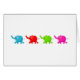 Niedliche Cartoon-Abbildung von vier verschiedenen farbigen Dschungelelefanten, die hintereinander marschieren. Bilder auf verschiedenen Geschenken und Produkten erhältlich.