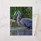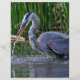Ein großer blauer Heron, der ins Wasser spritzt, nachdem er gerade einen Fisch vermisst hat.