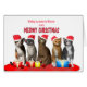 Eine lustige und niedliche Weihnachtskarte mit 5 hintereinander sitzenden Katzen, die Weihnachtsmannmützen tragen. Die Worte Meowy Weihnachten sind über den Katzen.Eine Weihnachtskarte für Ihren Minister,