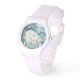 Zwei weiße Wölfe in einem herzförmigen Traumfänger machen eine einzigartige, tragbare Kunstuhr. Erhältlich in verschiedenen Farben und Stilen. Aus der Dream Catcher-Kunstsammlung von Carol Cavalaris ist dieses Design auch als Kunstposter oder -druck sowie auf anderen Produkten erhältlich.