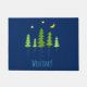 Diese individuell gestaltbare Türmchen zeigt eine einfache, moderne Abbildung einer Waldlandschaft mit majestätischen Bäumen mit Sternen und Mond im Mitternachtshimmel und Wasserwellen, die einem See ähneln. Ideal für Ihre Zuhause, Berg Log Zuhause oder Seehütte! Sie können die dunkelblaue Hintergrundfarbe dieses niedlichen und gemütlichen Designs leicht in eine Farbe ändern, die zu Ihrer Wohngestaltung passt. Sie können sogar den Text "Willkommen!" an Ihre eigene Nachricht oder Sprache anpassen.