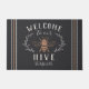 Herzlich willkommen in diesem niedlichen Bienentheater mit einer Vintagen Honigbienenillustrierung mit botanischen Blätter und Seildetails. "Willkommen in unserem Bienenstock" erscheint in Elfenbeinbuchstaben. Personalisieren Sie Ihren Familiennamen ganz unten.