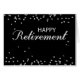 Eine nette Nachricht umgeben von silbernen Glitzern, sehen Sie alle auf schwarz. Eine sehr elegante Gratulationskarte für einen Mann oder eine Frau im Ruhestand. Sagen Sie ihnen, Sie sind stolz auf sie und wünschen ihnen das Beste.