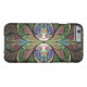 iPhone 6/6S Fallentwurf von "Herzogin von Sauchiehall," ein Apophysis-Fraktal durch Susan Wallace. Copyright © 2013, Susan Wallace. Abstrakter beflecktes Glas Blumenkunst Nouveau Art Hourglass in den Schatten des Grüns, des hellen rosigen rosa und des lila mit den schokoladenbraunen und Blauhöhepunkten.