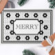 Dieses niedliche schwarz-weiße Imitat mit einem grünen grauen Rand ist perfekt für jede Zuhause zu Weihnachten. Die klaren Linien, die einfachen Farben und das Vintage Muster sind zeitlos und vielseitig. Auf einer gummibasierten Matte, die dauerhaft und leicht zu reinigen ist.