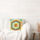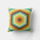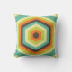 Es handelt sich um ein geometrisches, abstraktes Digitaldesign mit konzentrierten sechseckigen Formen, die von der Mitte nach außen strahlen. Jede Band wechselt in Farbe, mit einer Retropalette aus Orange, Gelb, Creme, Aqua, Grün und Braun. Die Symmetrie und Wiederholung erzeugen einen visuell auffallenden, fast hypnotischen Effekt, der an Kunstwerke und Vintage Muster der 1970er Jahre erinnert.