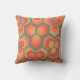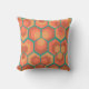 Dieses Kissen hat ein geometrisches Design von Sechsecken in Sets von drei, die wie Blume in Gold, Orange und Rot auf einem Feld von aquamarinen aussehen.