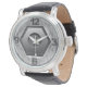 Karo aus dieser einzigartigen Armbanduhr, die mit einem Design inspiriert ist, das von einer Sechsschraube ist, und ihr ein cooles, industrielles Ambiente verleiht. Das moderne Aussehen macht es zu einem idealen Ort für alle, die will, sich durch den behalt von Zeitspuren zu überzeugen und gleichzeitig Funktionalität und Flair zu bieten. Cooles männliches Design, das ein großes Vatertagsgeschenk machen würde! Das ist kein Metall, sondern ein Bild, das metallisch aussieht.