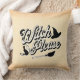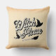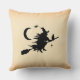 Halloween-Kopfkissen mit Vintager Grafik von Hexe, Katze, Besen und Mond.