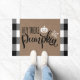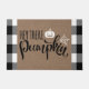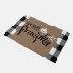 Begrüßungstrick oder Pflegekräfte an Ihrer Tür mit dieser festlichen Halloween-Türmatte. Das Design enthält Text, der "Hey da Kürbis" und Burlap-Hintergrund mit weißem und schwarzem Büffel kariert.