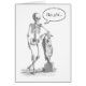 Stilvolle, aufwändige Vintage Illustration eines stehenden Skeletts aus dem 19. Jahrhundert, bei dem das komplette Skelett auf einem Tierschädel, der auf der Nase befestigt ist, sehr entspannt aufgelegt wurde. Saubere, um jedes Objekt in einer stilvollen und modernen Art zu dekorieren. Fügen Sie Ihren eigenen Text zu diesem Skelett zeichnend, wenn Sie möchten oder einfach genießen Sie die detaillierte Schwarzweiß-Viktorianische Kunst.