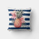 Hibiskus Ananas Tropisch, Navy Blue Streifen Kissen