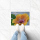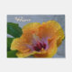 Eine Fußmatte für die Front Ihres Hauses, mit einer Fotografie einer gelben Hibiskus-Blume und des Wort Willkommens.