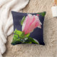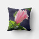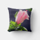 Mit diesem 16" Kopfkissen mit einer schönen rosa Blume bringen Sie ein wenig den Garten in Ihre Zuhause. Das Originalfoto von MaeFlowers ist eine Nahaufnahme eines Hibiskus, der noch nicht in voller Blüte ist. Morgens strahlt die Sonne durch die blass rosa Blütenblätter und hebt die Frühlingshöhe der grünen Blätter hervor. Der weiche Hintergrund ist eine dunkelblaue Farbe.