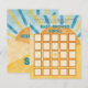 Einzigartige Watercolor Sunshine-Themed Baby Shower Bingo Game Card in den Farben Gelb, Blau und Burnt Orange.