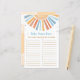 Mit unseren Sunshine Baby Shower Game Cards verschönern Sie Ihre Babydusche mit einer zusätzlichen Dosis Spaß! Diese Karten sind perfekt geeignet, um unvergessliche Momente zu schaffen. Teilen Sie die Freude, Ihre Kleine mit Freunden und Familie zu empfangen! BS642