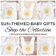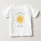 Dieses bezaubernde Baby-T-Shirt zeigt eine gelbe lächelnde Sonne und den Satz "Hier kommt der Sohn" in stilvoller Schreibmaschinentypografie. Es ist leicht anpassbar. Original-Wasserfarbe © Michele Davies.