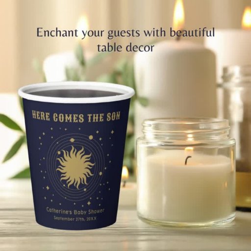 Mit unserer bezaubernden "Here Comes the Son" Celestial Baby Shower Collection, einer himmlischen Mischung aus Vintager Astronomie und moderner Eleganz, feiern Sie die Ankunft Ihres kleinen Jungen im stellaren Stil. Mit einem einzigartigen Thema, das den charmanten Charme des "Twinkle, Little Star" harmonisch mit dem majestätischen Reiz des Sonnensystems verbindet, ist diese Kollektion perfekt für diejenigen, die über die traditionellen Babyduschmotive hinausgehen möchten. Unsere sorgfältig gepflegte Kollektion besticht durch ein exquisites Farbgold, das die geheimnisvolle Schönheit des Nachthimmels in Erinnerung ruft und mit funkelnden Sternen, ruhigen Planeten und dem sanften Glühen der Sonne geschmückt ist. Jedes Detail der Kollektion "Here Comes the Son" ist darauf ausgelegt, Ihre Babydusche in ein Reich himmlischer Wunder zu bringen. Lass den Zauber des Universums segne deinen kleinen Stern mit einer Dusche, die so grenzenlos ist wie deine Liebe für ihn und schafft Erinnerungen, die für immer in deinen Herzen blinken.