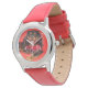 Kinderuhr aus Edelstahl mit rotem Lederarmband