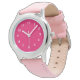 Kinderuhr aus Edelstahl mit rosa Lederarmband