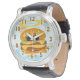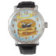 Uhr, Vintage Männeruhr mit schwarzem Lederarmband