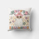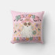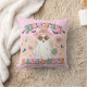Niedliches, buntes, lustiges Hippie Halloween Kissen mit einem Hippie-Geist mit rosa Hexenhut, Text, der Hippie Halloween, und einige Blume und kleine Fledermäuse und Schädel in Lavendel, Melon, Aqua, Pink!