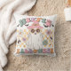 Niedliches, buntes, lustiges Hippie Halloween Kissen mit einem Hippie-Geist mit rosa Hexenhut, Text, der Hippie Halloween, und einige Blume und kleine Fledermäuse und Schädel in Lavendel, Melon, Aqua, Pink!