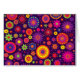 Niedliche Hippieart-Regenbogen-Blumen auf einem lila Hintergrund.