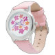 Kinderuhr aus Edelstahl mit rosa Lederarmband