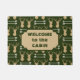 Dies ist eine niedliche Türmatte, die sich perfekt für eine Hütte oder eine Zuhause aus Holz eignet. Es zeichnet sich durch ein helles goldfarbenes Buchengewächshaus mit Silhouetten und weißen Pfeilen auf einem Hintergrund von dunkelgrün aus. In der Mitte befindet sich ein passendes Label mit Ihrem eigenen Text, auch in dunkelwaldgrün. Derzeit steht "WILLKOMMEN zum CABIN", aber Sie können es einfach an Ihren eigenen Text anpassen.