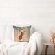 Ein quadratisches Kissen im rustikalen Stil. Designed mit einem Hirschkopf mit Geweih, aus rot kariert. Ein extravaganter ovaler Rahmen umgibt das Bild. Ein Bild von Holzplanken für das Hintergrundbild verleiht ihm ein ausgesprochen ländliches Ambiente. Der untere Rand hat ein dunkelblaues Muster mit Rissen und Blätter.