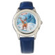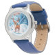 Kinderuhr aus Edelstahl mit blauem Lederarmband