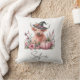 Eine Hochlandkuh trägt einen Hexenhut mit rosa Blume und einem Kürbis. Halloween-Kissen. Machen Sie diesen Tag etwas Besonderes und feiern Sie ihn mit Ihrer Familie und wünschen Sie ein frohes Halloween. Herbstvibes, wir können Ihren Namen personalisieren