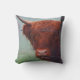 Hochlandkuh, die einen Drahtzaun bindet Kissen