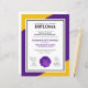 Unis, Universitäten, Oberschulen und Hochschulen können mit diesem modernen, zeitgenössischen Diplom, das mit elegantem Set auf lila, goldenen und weißen Hintergründen besticht, den Abschlüssen noch mehr Raffinesse verleihen. Angepasst mit dem Namen des Schülers und seiner Familie, dem Namen der Fakultät, dem Namen der Schule/Uni/Universität, dem Ort und dem Datum des Abschlusses, bis zu vier (4) Unterzeichnern und akademischem Logo oder Slogan. Farben und Schriftart können nach Wunsch modifiziert werden. Design © W.H. Sim, Alle Rechte vorbehalten. Weitere Informationen unter zazzle.com/expressionsoccasions