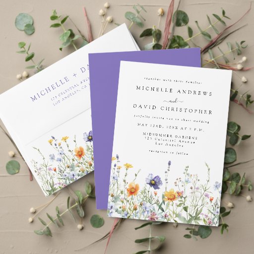 Dieses Design zeichnet sich durch eine farbenfrohe Wildblumen in den Farbtönen lila, gold, grün und blau aus.