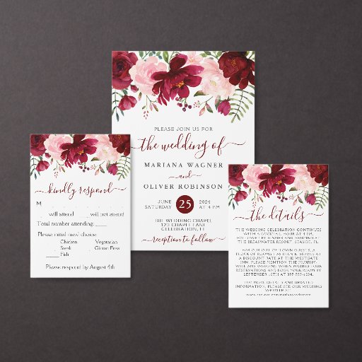 Hochzeit Foto Liebe und Dankkarte Burgundy Pink Einladung (Personalisiere diese Kollektion eines unabhängigen Creators.)Hochzeit Foto Liebe und Dankkarte Burgundy Pink Einladung (Vorderseite)Hochzeit Foto Liebe und Dankkarte Burgundy Pink Einladung (Rückseite)
