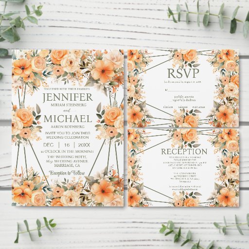 Peach, White and Green Botanical Floral Wedding Designt von Eliana S.