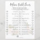 Dieses Design beinhaltet ein Hochzeitsspiel, würde sie lieber eine Vorlage, eine einfache minimalistische klassische Kalligraphie, ein individuelles Brautparty-Aktivpapier, rosa Blumenkleid, maßgeschneiderte Brautparty-Party, einfaches Füllpapier, eine elegante Kalligraphie Typografie, blaue Rose Grünpflanzen botanisches, maßgeschneidertes Brautparty druckbare Spiel