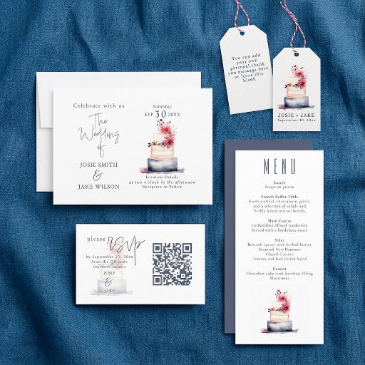 Watercolor wedding cake wedding stationeryDesignt von Andy O'Dell