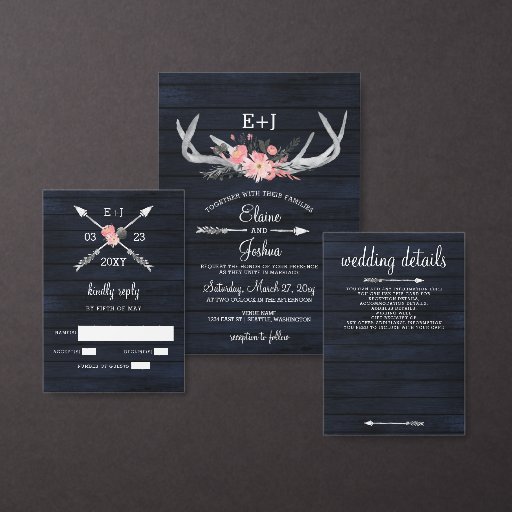 Navy Blush Blooming Antlers Rustic Chic WeddingDesignt von Maria G