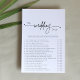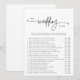 Fügen Sie Ihrer Hochzeit oder Ihrem Brautparty eine Touch Spaß und Spannung mit unserer "Shoe Card" hinzu! Dieses einnehmende Spiel ist perfekt für die Feier des Paares und bringt die Gäste zu einem lebendigen und unvergesslichen Erlebnis zusammen. Hauptmerkmale: Charmantes Design: Die Spielkarte ist stilvoll und elegant gestaltet und ergänzt jedes Hochzeitsdekor oder Brautparty. Hochwertige Printmedien: Diese auf Premium-Papier gedruckten Spielkarten bieten ein luxuriöses Ambiente und lebendige Farben und sorgen für ein angenehmes Erlebnis für alle. Spaß und interaktiv: Die Gäste werden sich an dem Shoe Game der Hochzeit erfreuen und Freude und Lachen ausstrahlen, während sie Spaß und Fakten über das Paar erfahren. Clear Instructions: Einfache Anweisungen sind im Lieferumfang enthalten, sodass es für jeden einfach ist, am Spiel teilzunehmen und es zu genießen. Warum wählen Sie unsere Hochzeitsspielkarte? Zeitloses Thema: Das elegante Design macht dieses Spiel zu einer herausragenden Ergänzung zu jeder Hochzeit oder jedem Brautparty. Leicht zu spielen: Einfache Anleitungen sorgen dafür, dass sich jeder an dem Spaß beteiligen kann, was es zu einem Hit für Gäste jeden Alters macht. Gedächtlicher Keepake: Diese wunderschön gestalteten Spielkarten können als Erinnerungen an einen besonderen Tag aufbewahrt werden. Ideal für Hochzeiten oder Brautpartys: Ob Sie eine traditionelle oder moderne Feier planen, unsere "Shoe-Card" ist die ideale Ergänzung. Es ist eine fantastische Möglichkeit, Gäste zu unterhalten und die Veranstaltung angenehmer zu gestalten. Bestellen Sie noch heute Ihre Hochzeitsspielkarte! Unser exquisites Schuhspiel bringt Freude und Spannung in Ihr Brautparty oder Ihre Hochzeit. Bestellen Sie jetzt und lassen Sie den Spaß beginnen!
