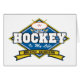 Blau- und Golddreieck tragen das Logo zur Schau, das einen gekreuzten Hockeystock kennzeichnet und Hockey-Puck mit Hockey ist mein Lebentext! Geboren zu spielen, bestimmt gelbe Fahne über der Unterseite gewinnen! Große Hockeygeschenke!