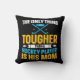 Hockey-Theme werfen Kissen für die Hockey-Mutter mit Hockey-Pucks und Sticks mit weißem, gelben und blauen Text, dass The Only Thing Tougher Than Hockey Player ist Seine Mama!