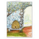 Ursprüngliches Aquarell von Imker skep, Bienenstock, sitzend nahe einer Steinwand eines Hofes.