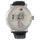 Uhr, Vintage Männeruhr mit schwarzem Lederarmband